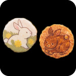 日差しの下で、野うさぎたちがタンポポの咲く野原を駆け回り、春の陽気に心躍らせる情景を表現しました。
