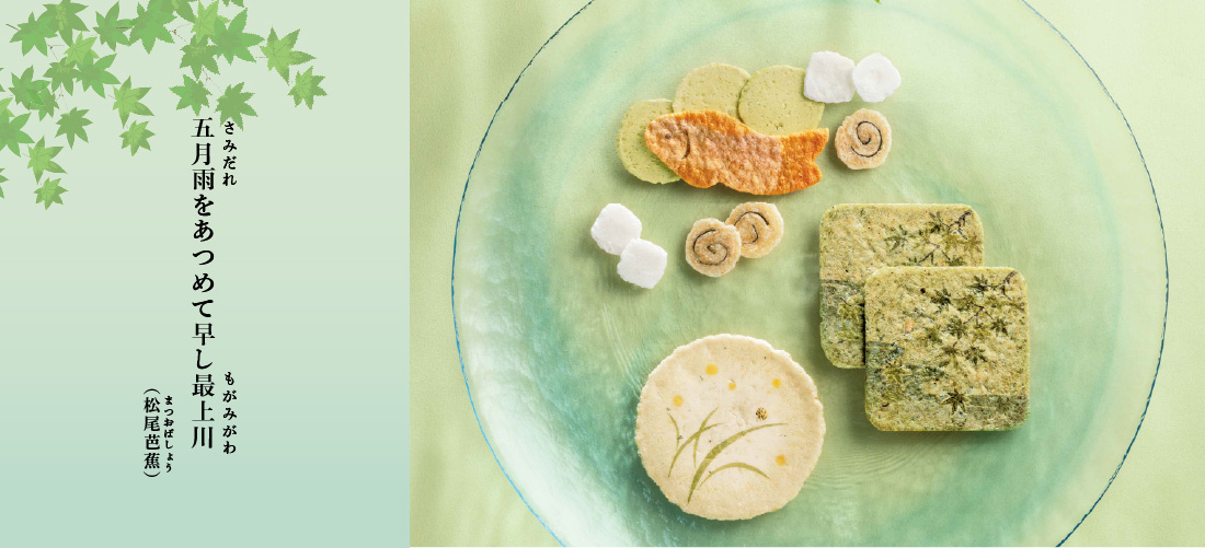 TOP 種類で選ぶ 初涼み 「五月雨(さみだれ)をあつめて早し最上川(もがみがわ)」(松尾芭蕉(まつおばしょう)) 澄んだ水面に揺れる青紅葉。 恵みの雨をその身に蓄え、流れゆく川の清々しさ。 日暮れになると優しく舞い飛ぶ 小さな灯りひとつ、ふたつ。 初夏の涼やかな情景を、えびせんべいでお楽しみください。 表示切替: 写真のみ 説明付き 並び順: 標準 レビューの多い順 おすすめ商品順 新着商品順 値段の安い順 値段の高い順 名前:昇順 名前:降順 在庫: 在庫あり 在庫なし含む 1件中1件~1件を表示 商品一覧 初涼み(10袋入) ¥2,160(税込) 1件中1件~1件を表示