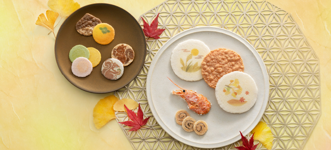 TOP 種類で選ぶ 秋ひらり 銀杏(いちょう)や紅葉が舞い踊り、色づく秋山。 空気が澄んだ夜空には美しい月が浮かび、秋風がすすきを静かに揺らします。 収穫の喜びや豊かな実りの風景を描いたえびせんべいです。 秋ひらり(24袋入) ¥3,564(税込) 購入する 商品一覧 該当商品はありません
