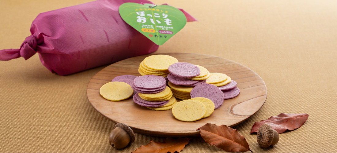 TOP 種類で選ぶ ふたつの美味しさ ほっこりおいも 濃厚な甘さとねっとりとした食感が特徴の「紅天使」と、優しい甘さが特徴の紅芋「ちゅら恋紅」。 それぞれの素材を活かしたふたつのえびせんべいを、秋らしいさつまいもをかたどった形に仕上げました。 食欲の秋にふさわしいえびせんべいです。 商品一覧 該当商品はありません