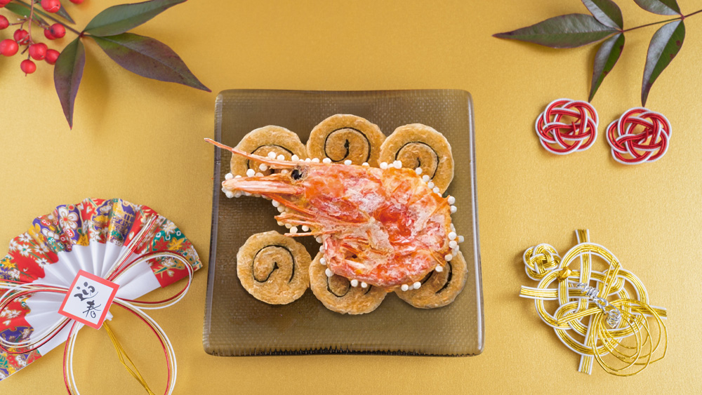 その姿にこめられた願いを噛み締めるようにいただく、香り高く上品なえびせんべいもまた、お祝いの席、団らんの席にぴったりのお菓子といえるでしょう。