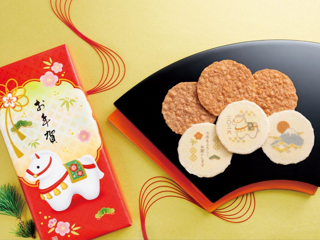 新年の干支や富士山、「今年もよろしくお願いします」のメッセージを描いた、お正月限定の詰め合わせです。