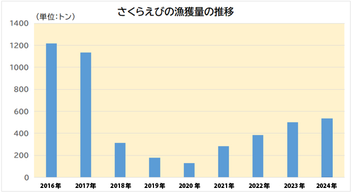 海洋環境の変化などの複合的な要因が重なり、近年、桜えびの漁獲量は激減しています。